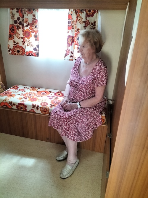 | Et voilà Maman... agée de 91 ans (il y a 3 ans) émue remontant dans une caravane "Trigano" qu'elle vendait il y a 50 ans. "c'est loin" me disait-elle, reconnaissant tous les détails. | |