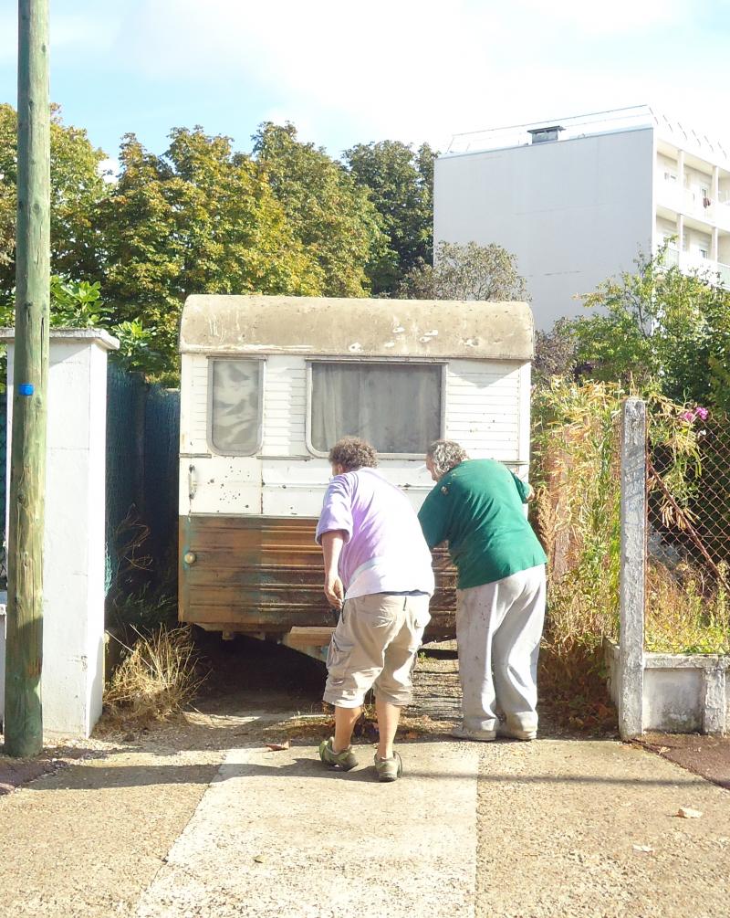 Jugez plutôt: départ de la maison à 6h00, comme tous les jours d'ailleurs, direction la capitale, enfin presque puisque nous nous arrêterons au Blanc Mesnil, dans le neuf trois. Un peu après 8h00 (nous nous sommes un peu perdus...), nous retrouvons NDi, que j'appellerai maintenant Nicolas, c'est moins impersonnel, qui avait déjà , en compagnie de son fils, commencé le défrichage.