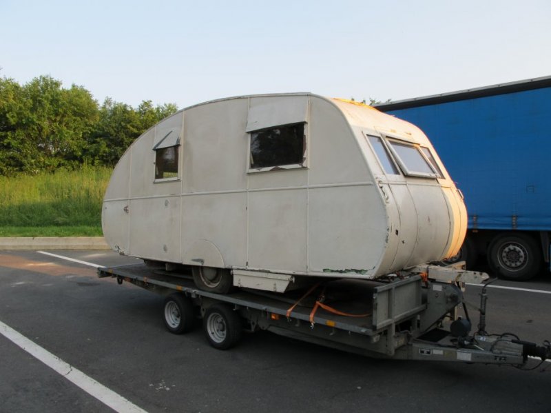 Cette caravane anglaise revient de loin ! Son propriétaire avait commencé a la démonter dans les années 60 je crois pour la bruler !!! Sa belle fille l'a stoppée dans son élan et la caravane est restée dans le garage jusqu'en mai 2012 ou je suis venu la récupérer.