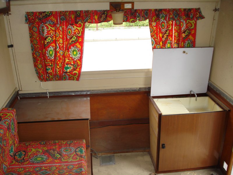 Je signale quand même que normalement, le meuble où il y a l'évier se prolonge jusqu'à la banquette de gauche et que c'est dans celui-ci que l'on met le coin cuisson. Les anciens propriétaires n'étant que deux, ont, à priori, préféré supprimer ce meuble, peut-être pour y mettre un petit frigo ? J'essaierai de la remettre comme à l'origine.