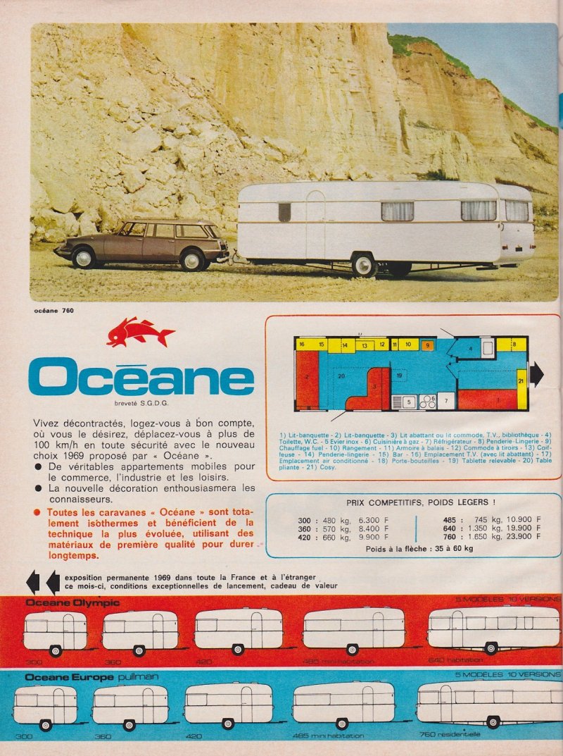 En 1973 les OCEANE changeront de forme et de technique en ressemblant fortement aux caravanes belges CHATEAU (certainement construites sous licence), les FALAISE prendront le relais pour les amateurs de "véritables" OCEANE.