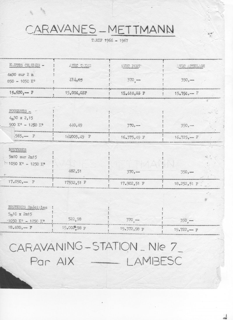 Mettmann, Viscount, Sterckeman, Caravelair, Escargot et France Confort 410 ou 450 + 404.