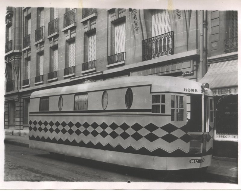 "Home automobile. Confortable maison roulante comprenant  cuisine, salle à manger, chambre, cabinet de toilette. Son propriétaire est en train d'effectuer le tour de France."