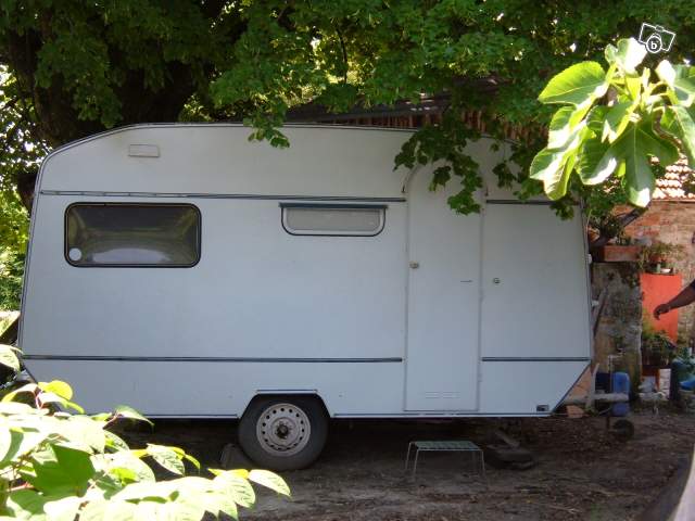 C'est une petite caravane pour 2/3 personnes avec un aménagement très sommaire, composé de lits de camps, d'une armoire et d'un petit réchaud.