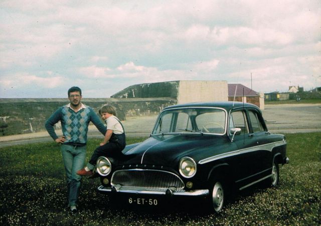 Mon père posant fièrement en vacances en 1962 devant une "Beaulieu?" dont-il "coulait" le bloc-moteur en fonte à l'usine tout au long de l'année ! :lol2: