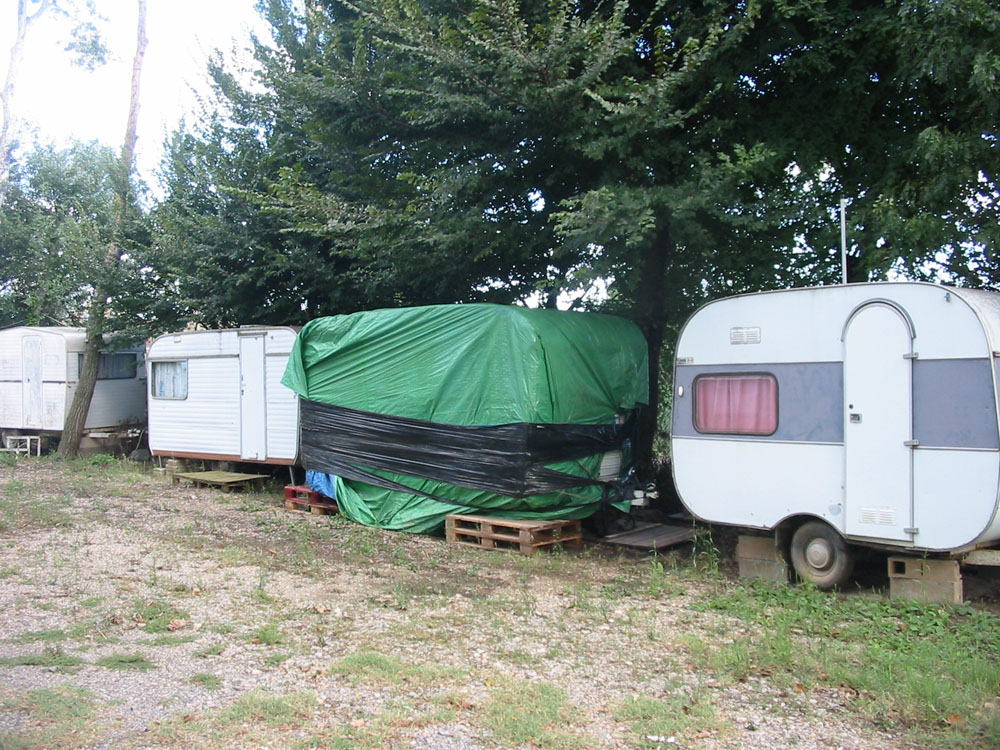 Caravane sous la bâche pour un stockage de décembre 1011 à octobre 2012.